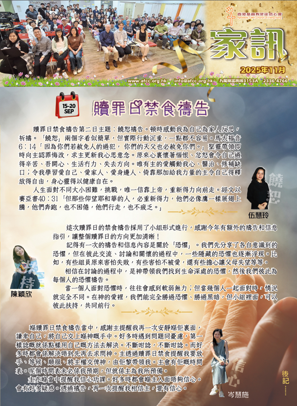 地址: 九龍橫頭磡樂富廣場3153A室電話: 2336 4766電郵: info@afcc.org.hk傳真: 2794 0395